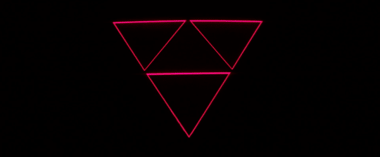 The show begins. Jesse’s all nerves at first as the other models drift out onto the runway. She closes her eyes to steady herself. This is where her chrysalis begins. When she opens her eyes again a moment later, the other models, the crowd, they’re gone, all she sees in front of her is an unfocused darkness occasionally lit by lens flare, presumably the flashing bulbs of the fashion press removed not by distance, but rather by a measure of consciousness. Then Jesse notices something flickering in the darkness. It’s the image of a point-down triangle made of three smaller triangles that she saw earlier as an hallucination after the Sarno casting call and a run-in with Sarah in the ladies room that ended in a tiny bit of blood-sucking on that other girl’s behalf. The triangle is a symbol of change, of transition; it is also representative of a doorway or a nexus point between places or, in this case, conditions of being.